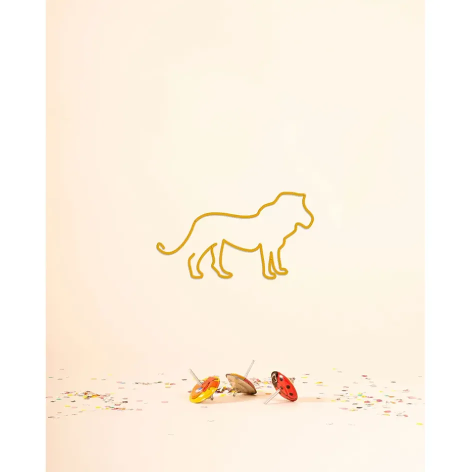 Imprégnez votre intérieur d’une présence majestueuse grâce à notre déco murale en acier jaune de 30×15 cm représentant un lion.