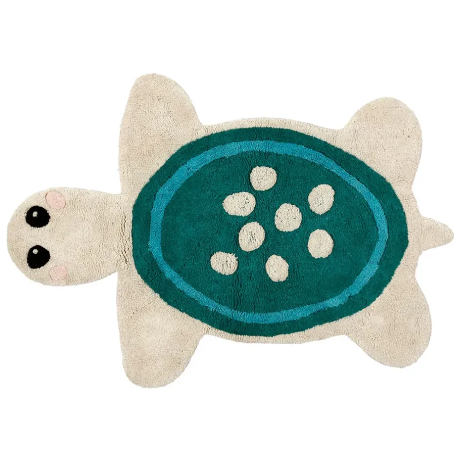 Ajoutez une touche de magie marine à la chambre de votre enfant avec le tapis tortue en coton tufté écru et bleu.