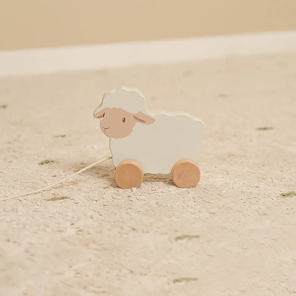 Tirez ce petit mouton mignon le long de sa chaîne et il rebondit joyeusement avec vous.