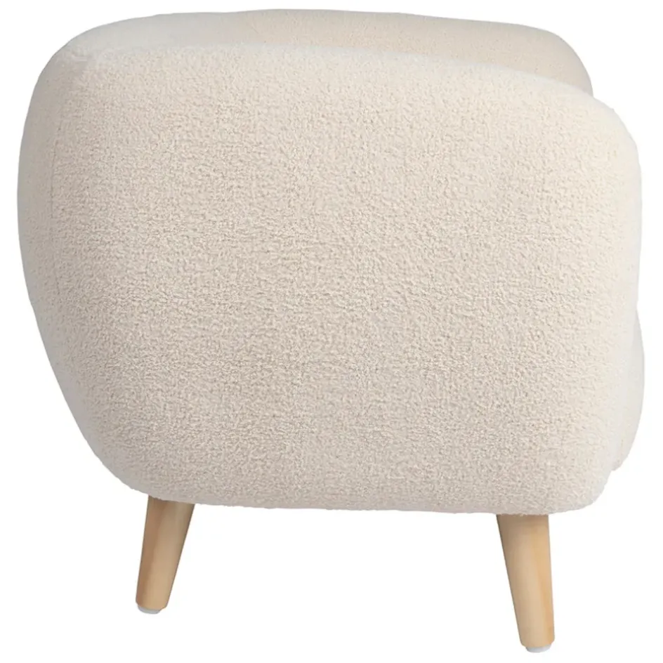Avec son assise moelleuse en polyester écru et sa structure robuste en contreplaqué et bois naturel, ce fauteuil est conçu pour apporter douceur et durabilité.
