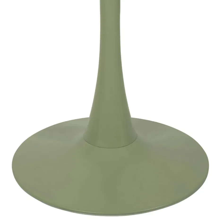 La table est réalisée en fer de couleur kaki, ce qui lui confère une résistance aux intempéries et une longévité remarquable.