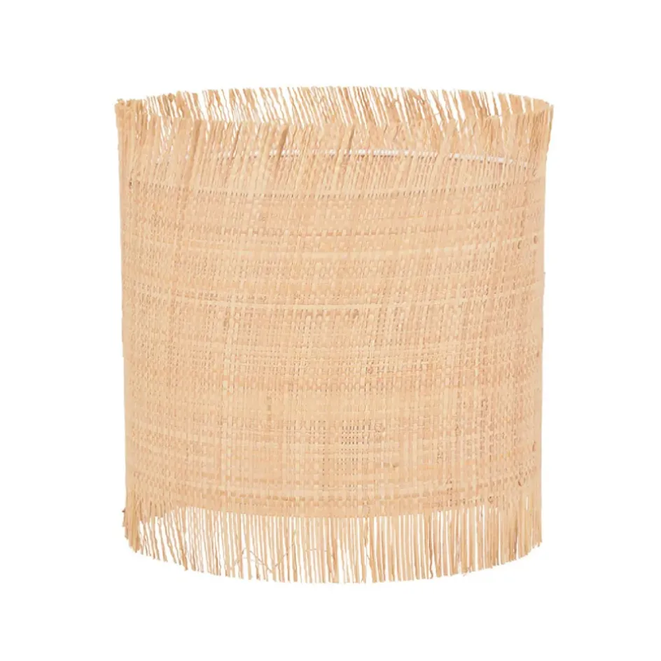 Abat-jour forme cylindre en matière naturelle raphia double franche – Bague E27Céramique + rotin
