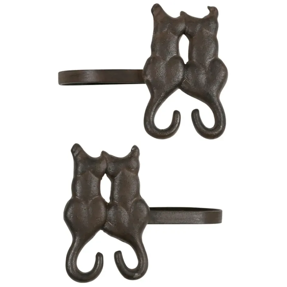 Découvrez ce ravissant lot de 2 paires d’embrasses chat, des accessoires pour rideaux en fonte brun.