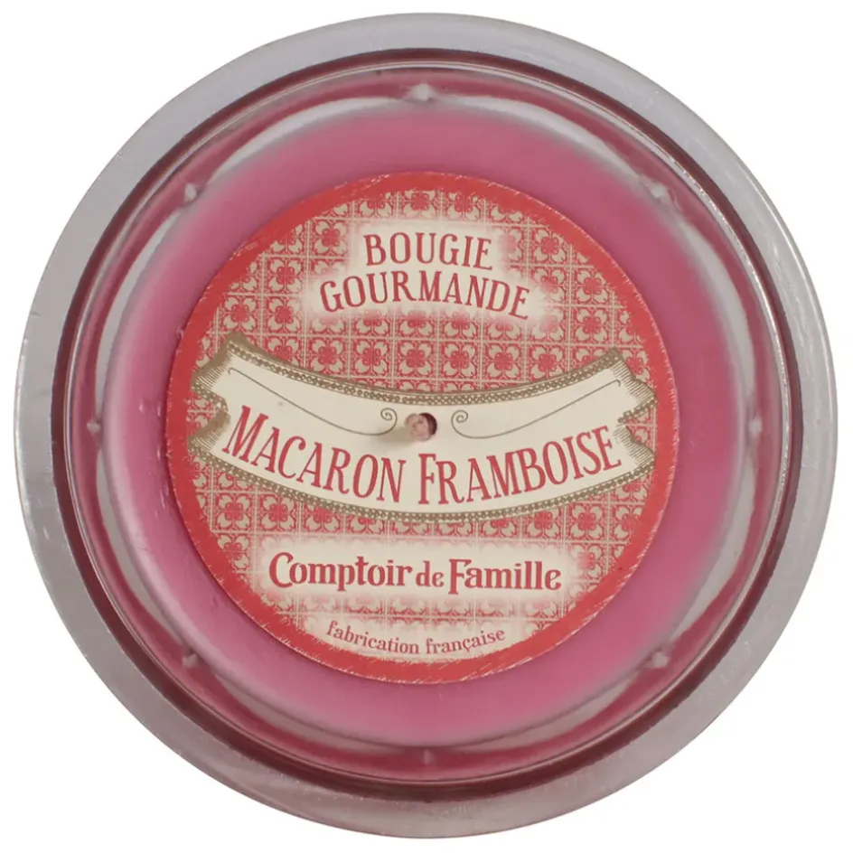 Découvrez une expérience olfactive unique avec notre bougie parfumée à la senteur de macaron framboise.