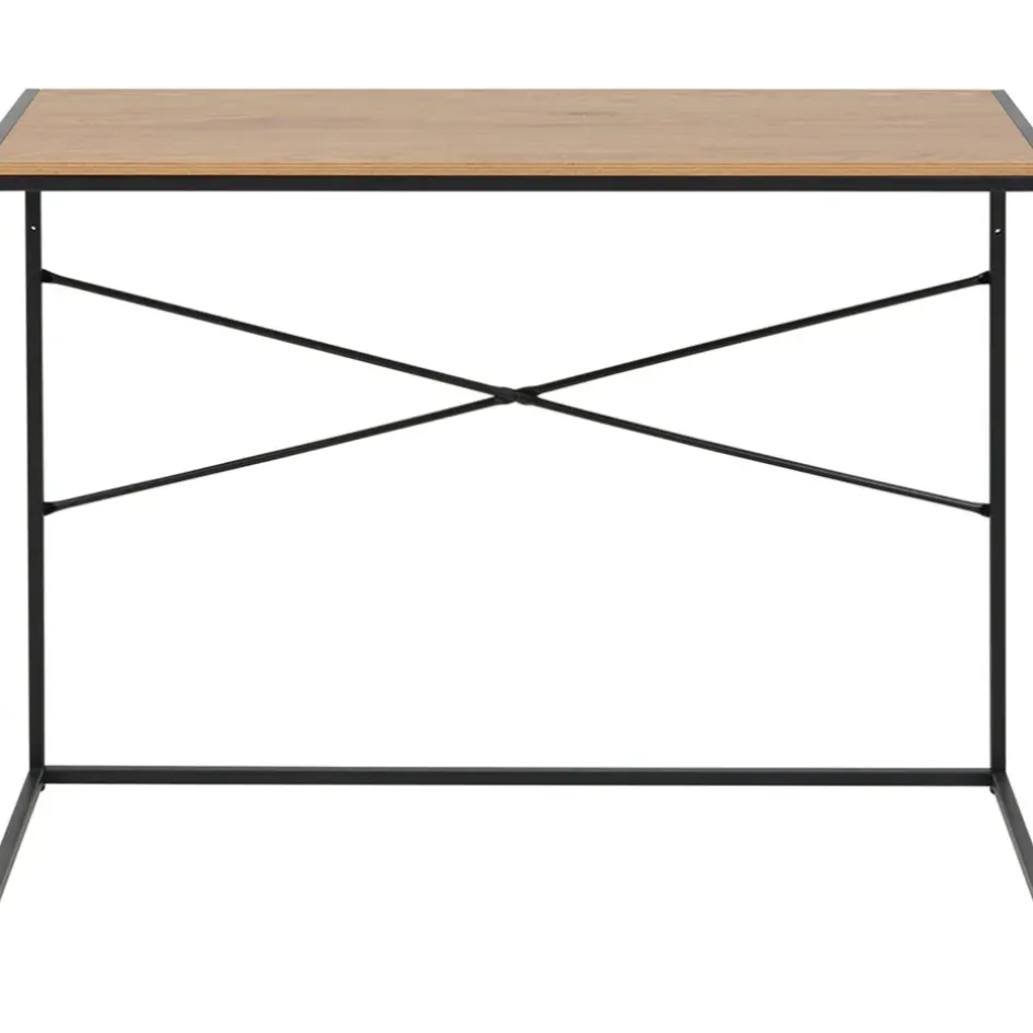 Pratique et durable, ce meuble trouvera sa place dans votre chambre, bureau ou bien salon !Plateau en papier rugueux chêne sauvage mat. Piètement en métal thermolaqué noir mat rugueux.