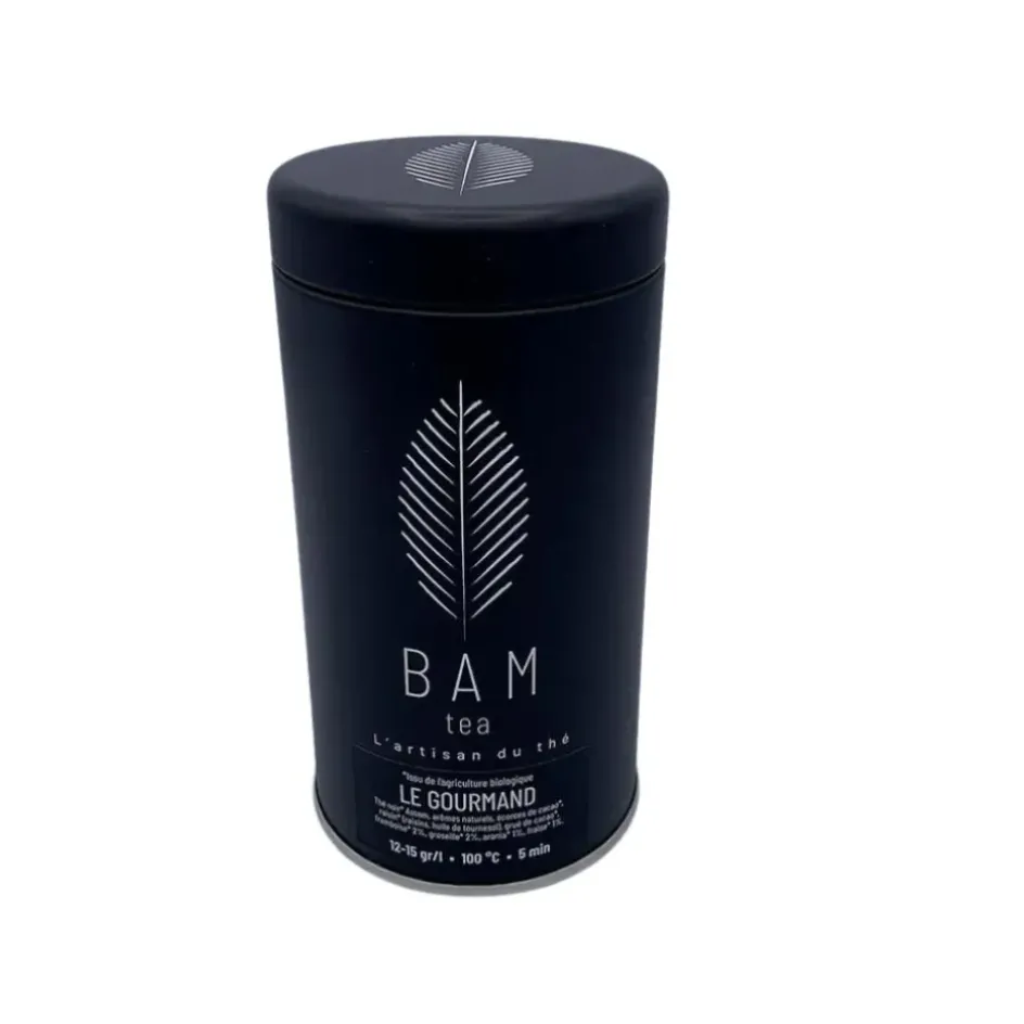 Thé Noir Bio Le Gourmand, Une recette toute en gourmandise pour ce thé noir Assam aux saveurs de brownie et baies sauvages, de la marque BAM TEA à découvrir sur Fabrique de Styles.