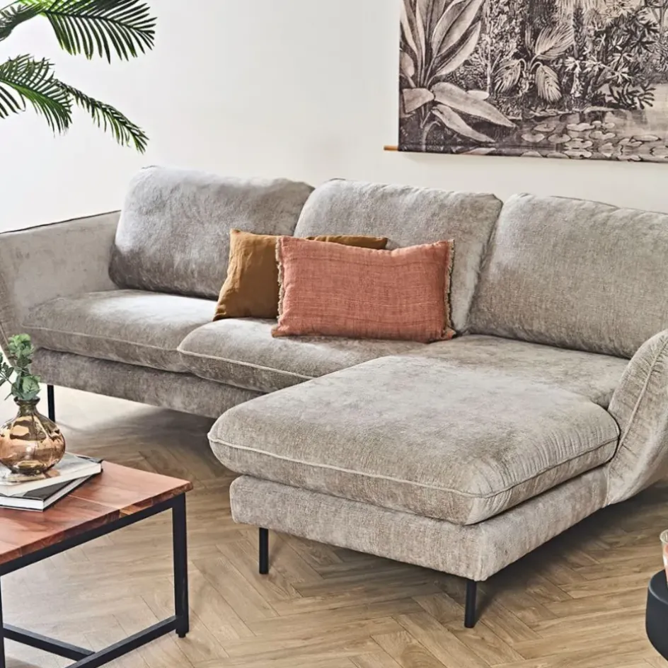 Grâce à ses accoudoirs et à sa méridienne, ce canapé d’angle est parfait pour se relaxer en famille ou entre amis.
