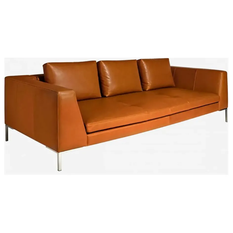 Fabrique de Styles Canapés Fixes*Canapé fixe 3 places en cuir vintage cognac – Montino