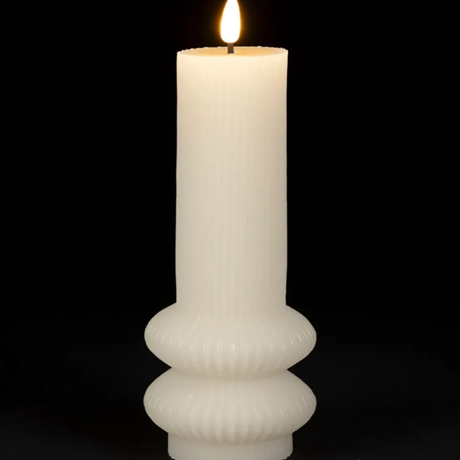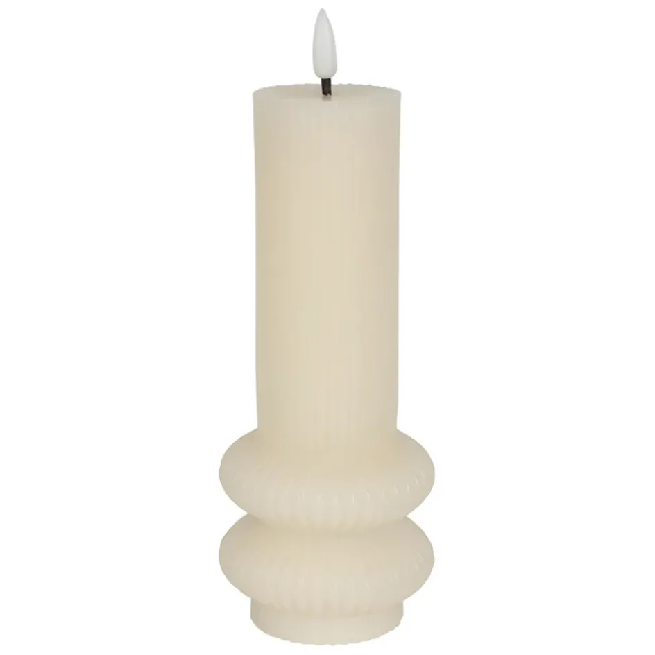 Illuminez votre ambiance avec cette bougie LED en pilier d’un délicat coloris ivoire, mesurant 21 cm de hauteur.