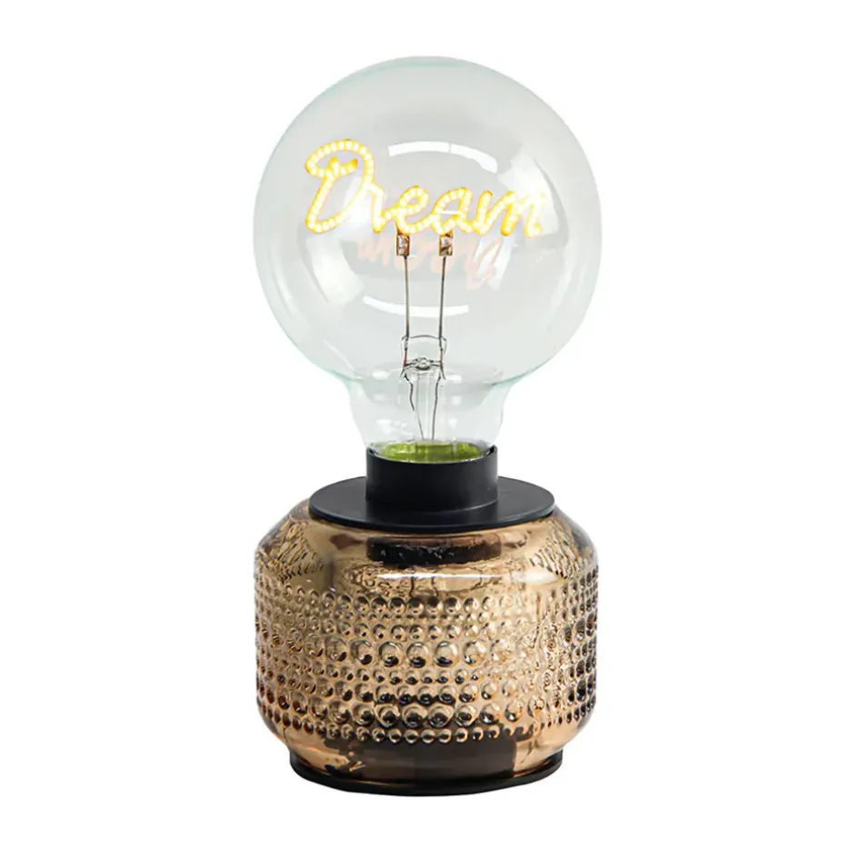 Lampe décorative à piles. En verre transparente DREAM en led et pied de lampe couleur ambre . Piles non incluses.Verre