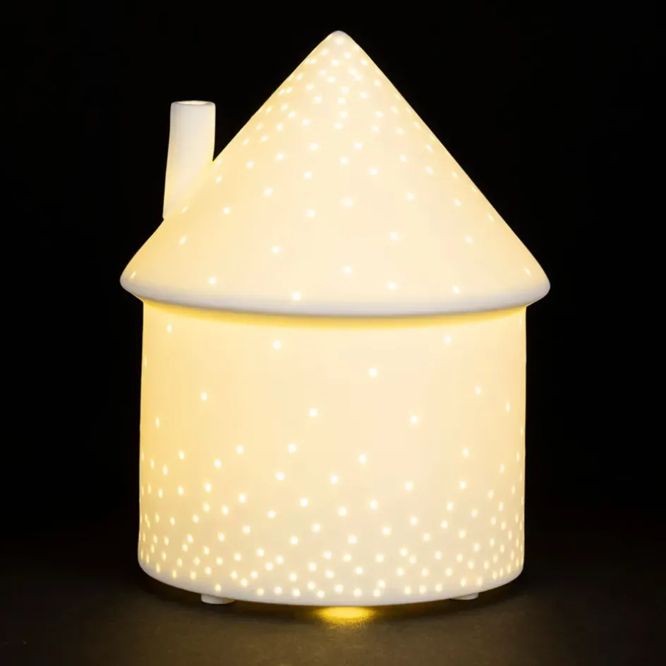 La lampe maison en porcelaine blanche Beezz, mesurant 17 cm de hauteur et dotée d’un éclairage LED, crée une ambiance chaleureuse et accueillante.