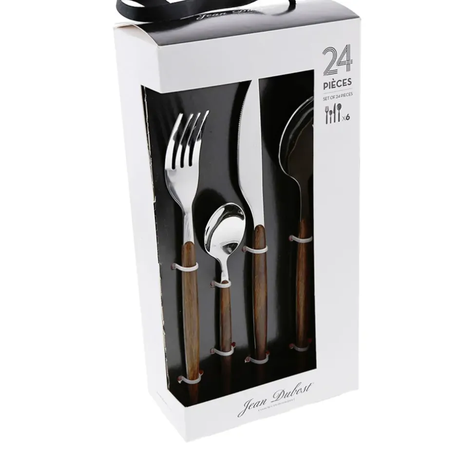 Découvrez l’ensemble de couverts Amsterdam, une ménagère de 24 pièces qui apportera une touche naturelle et moderne à votre table.