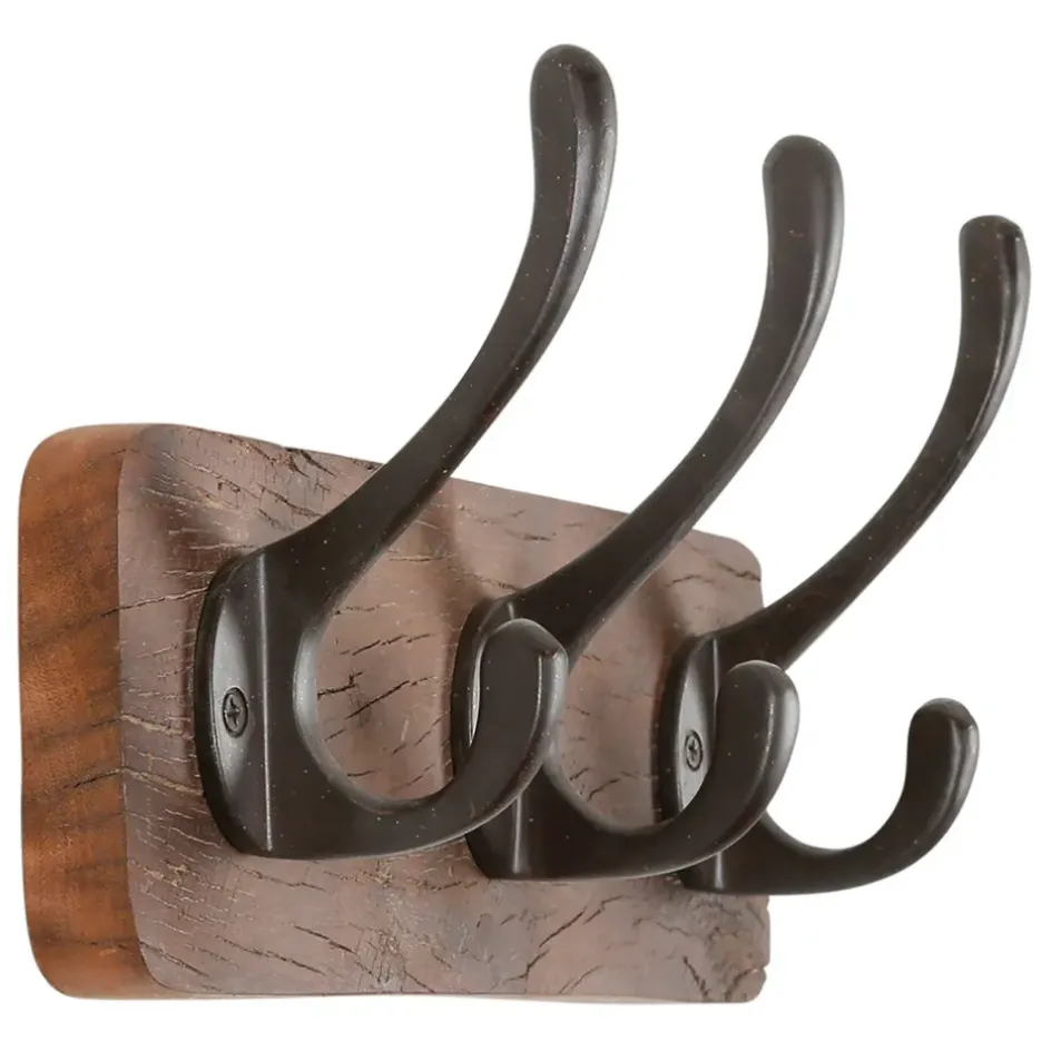 Découvrez la patère 3 crochets en shorea et ferrier brun 31x17cm – Campagne, un accessoire de décoration incontournable pour votre intérieur.