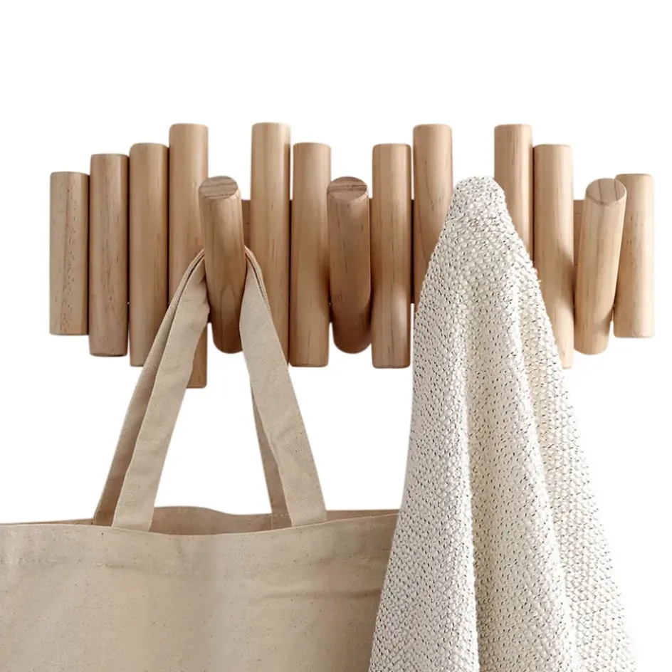 La patère murale en bois naturel de 38x18x6.3cm avec 5 crochets, idéale pour ajouter une touche d’élégance à votre intérieur tout en permettant un rangement organisé de vos objets.Acajou blanc