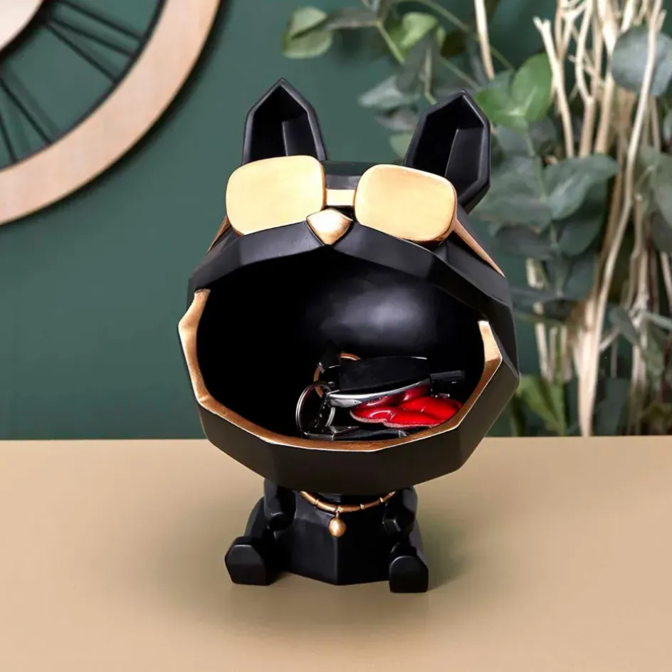 Ajoutez une touche de fantaisie à votre entrée ou votre salon avec ce vide-poche en forme de chien à lunettes, au design résolument original !