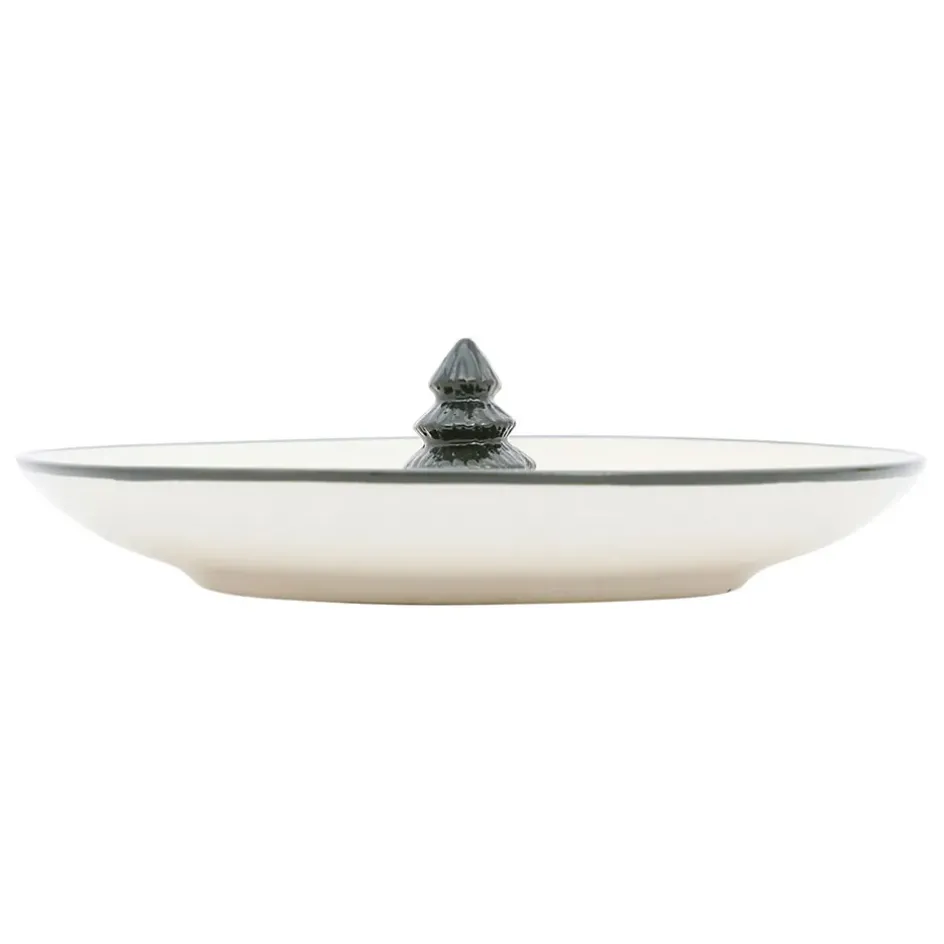Ajoutez une touche d’élégance fonctionnelle à votre espace avec le vide-poche « Mon Sapin » en grès écrue et vert.