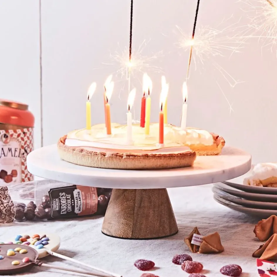 Découvrez notre magnifique plateau en marbre et manguier blanc de dimensions 30x30xh10cm.