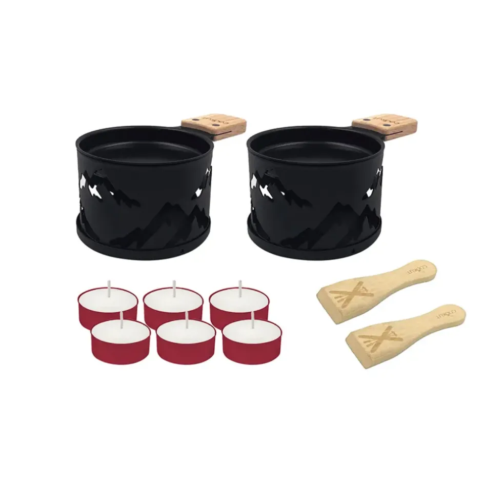 Spécialement conçu pour deux personnes, ce coffret favorise des moments d’intimité et de complicité autour de fondue de fromage fondant.