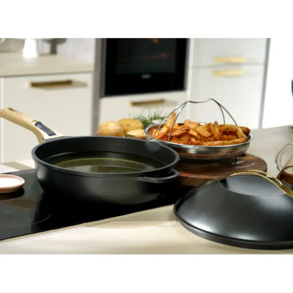 La poêle fabuleuse d28cm – meteore de Cookut est un ustensile de cuisine polyvalent qui peut remplacer huit autres ustensiles de cuisine.