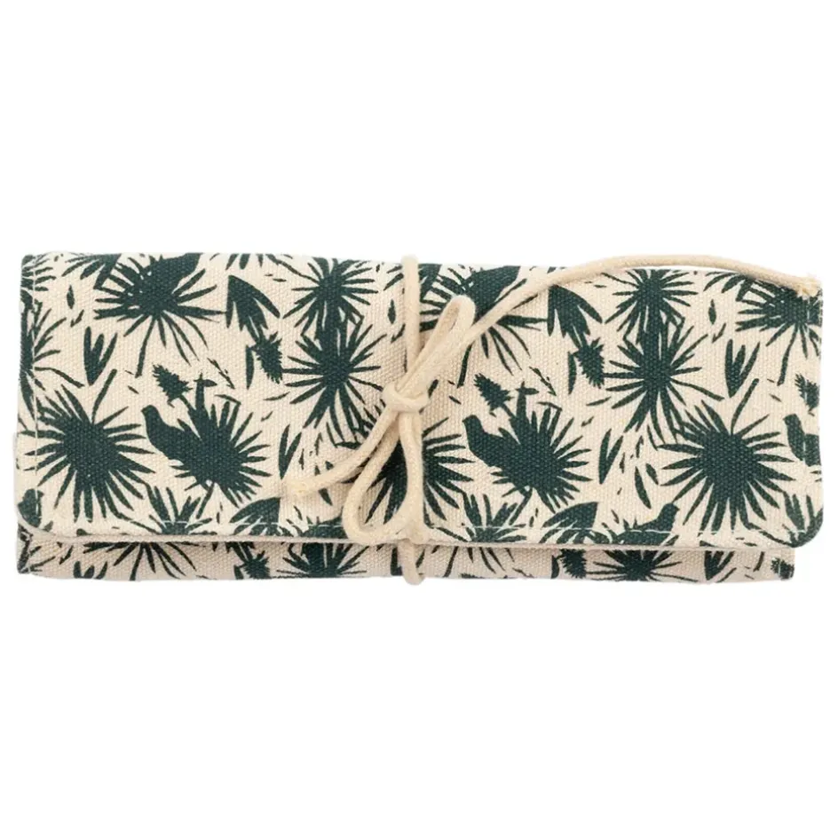 Venez découvrir notre Pochette bijoux voyage palmea ecru+vert foncé 20x24cm coton de la marque SEMA Design à découvrir sur Fabrique de Styles.Coton / Cotton