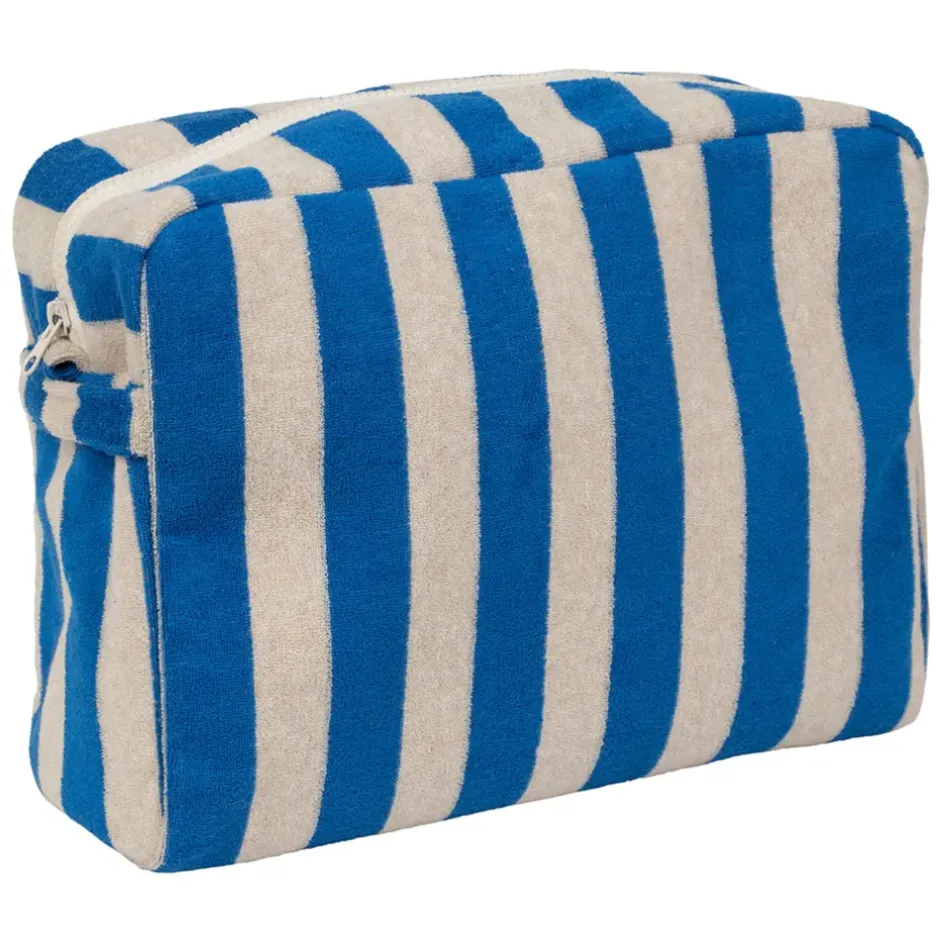 Découvrez la trousse de toilette en coton et polyester indigo Palma, un compagnon idéal pour voyager en toute sérénité.