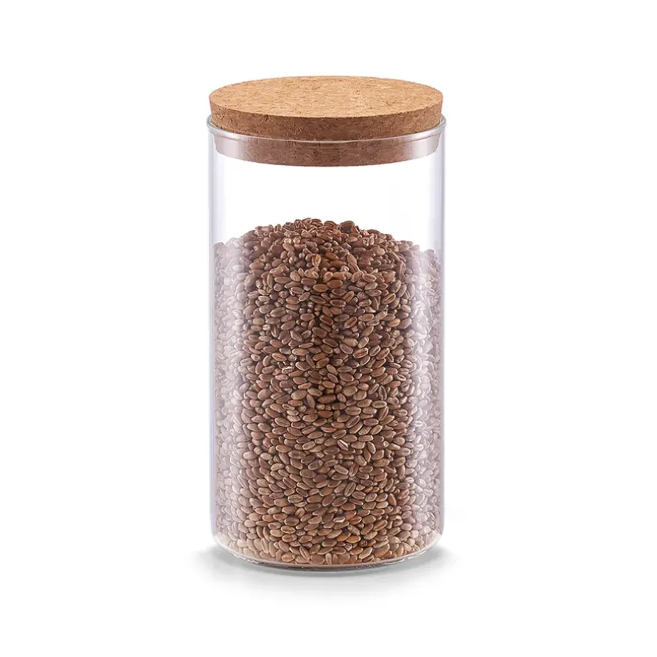 Découvrez notre bocal en verre de 1.1L avec un couvercle en liège, parfait pour conserver vos aliments frais tout en ajoutant une touche d’élégance à votre cuisine.Verre et manguier.