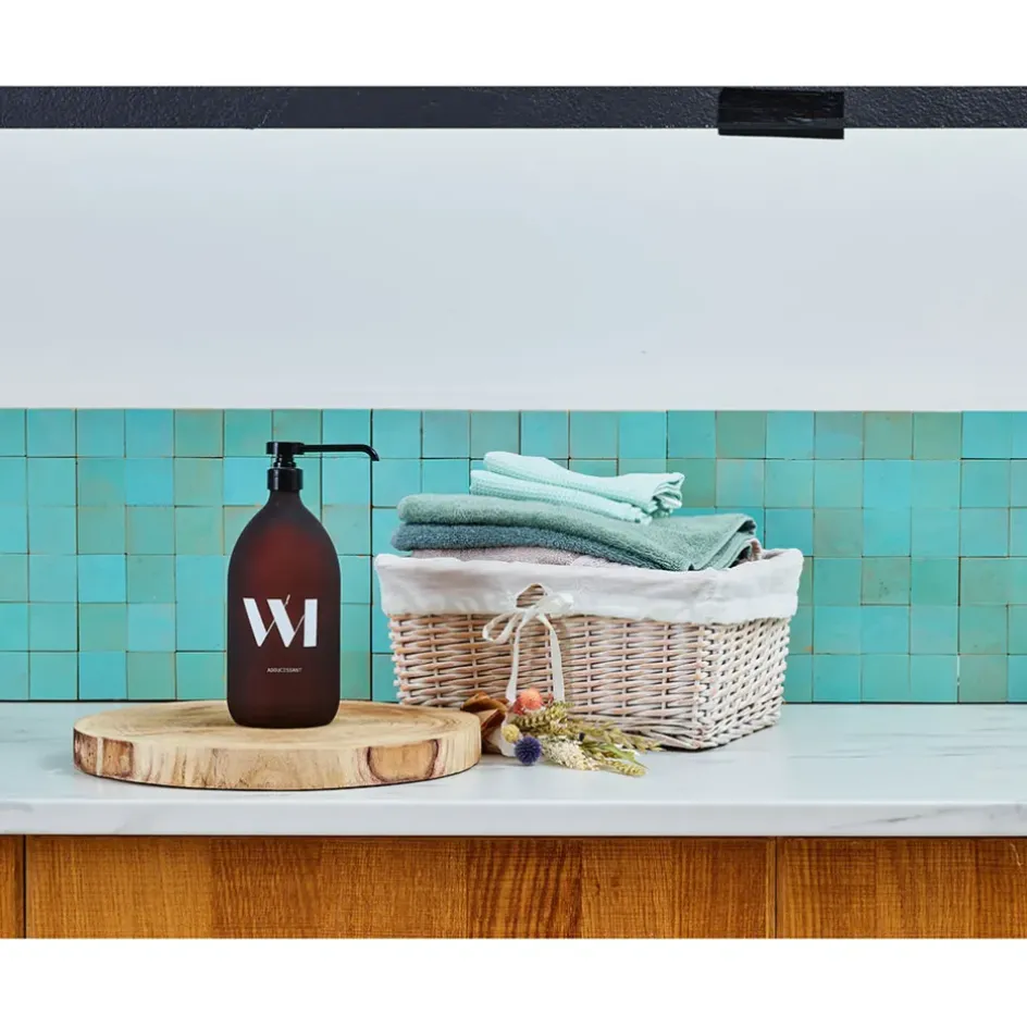 Pour un esprit déco même jusqu’à la buanderie, son joli flacon en verre classique de 1000mL est rechargeable.Plus de 30% de savon. Valeur actuelle 72% de savon.