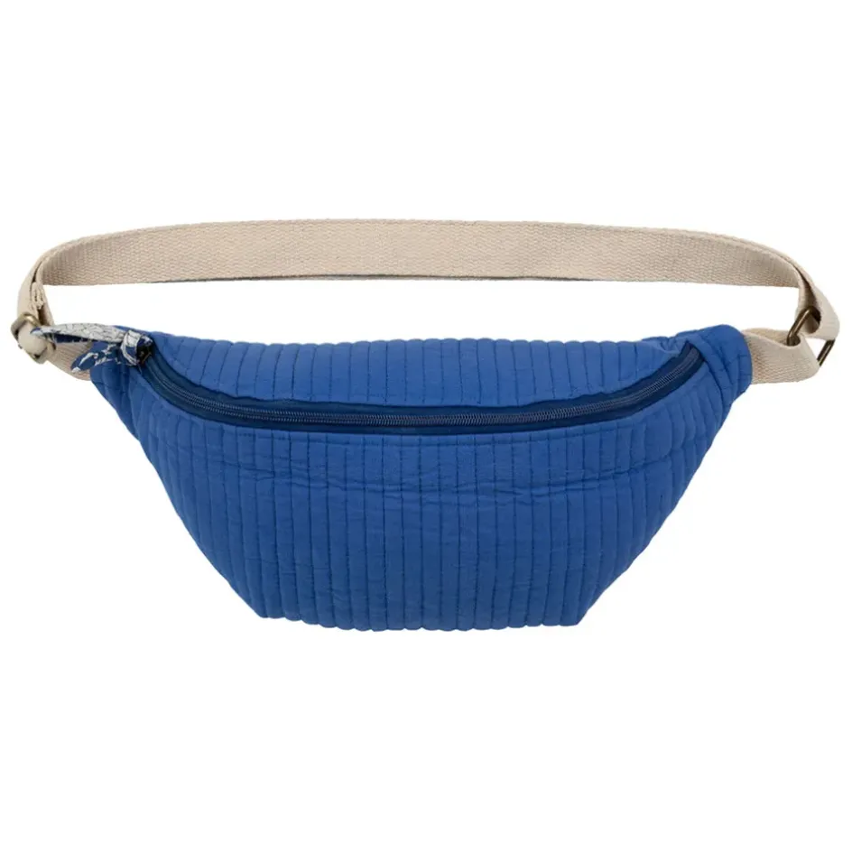 Découvrez le sac banane en coton matelassé indigo, l’accessoire indispensable pour allier confort et style au quotidien.