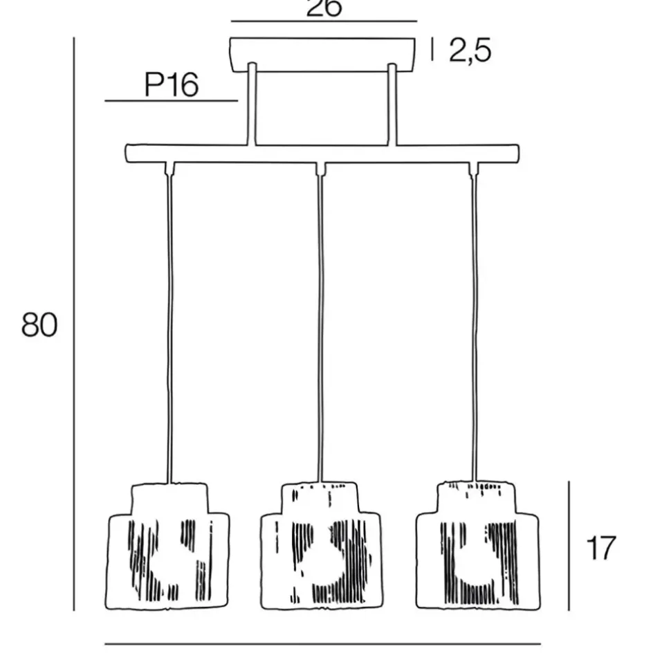 Suspension base rectangulaire 3 lumières base métal et abat-jour en cordelette de papier tressée à la main. Hauteur réglable. Coloris : naturel. IP20. L60cm – H17cm – HT80cm – P16cm. Classe 1. E27-40W. metal et cordelette papier tressé