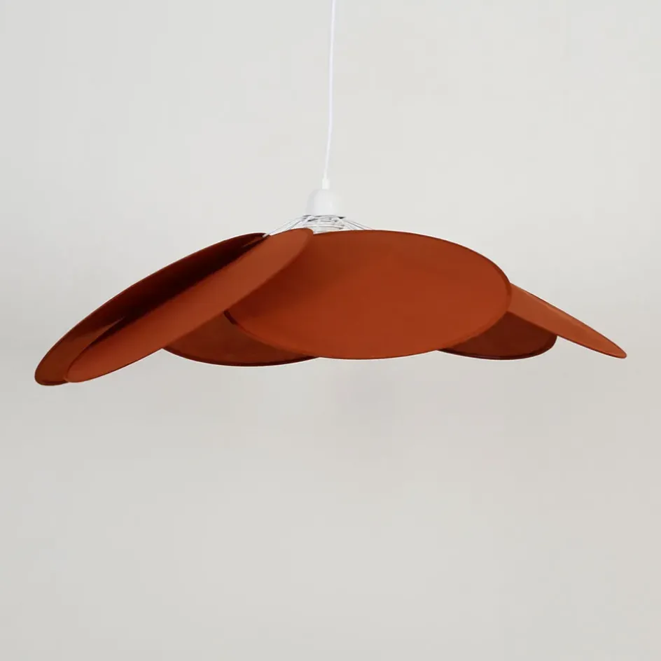 Cette suspension evoque une fleur qui ouvre ses pétales et revèle une couleur rouge rouille, idéale pour les espaces modernes.