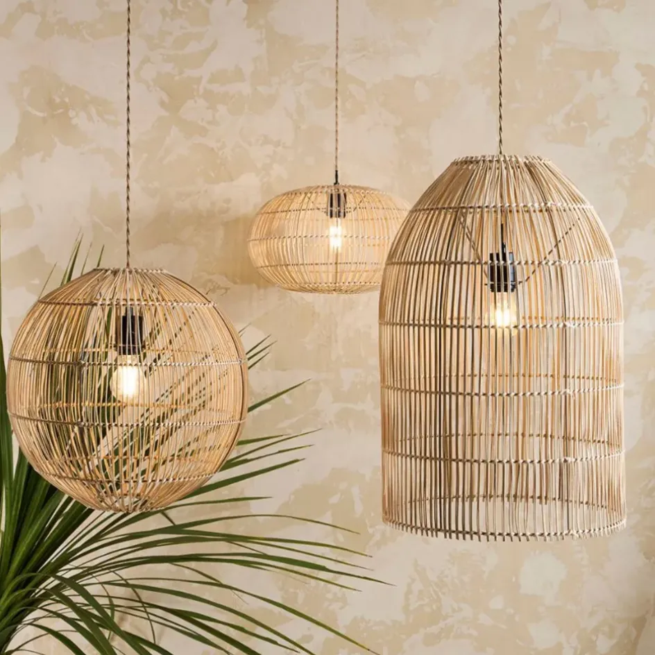 Découvrez la suspension en rotin et fer naturel, un superbe ajout à votre intérieur qui allie matériaux naturels et design fonctionnel.