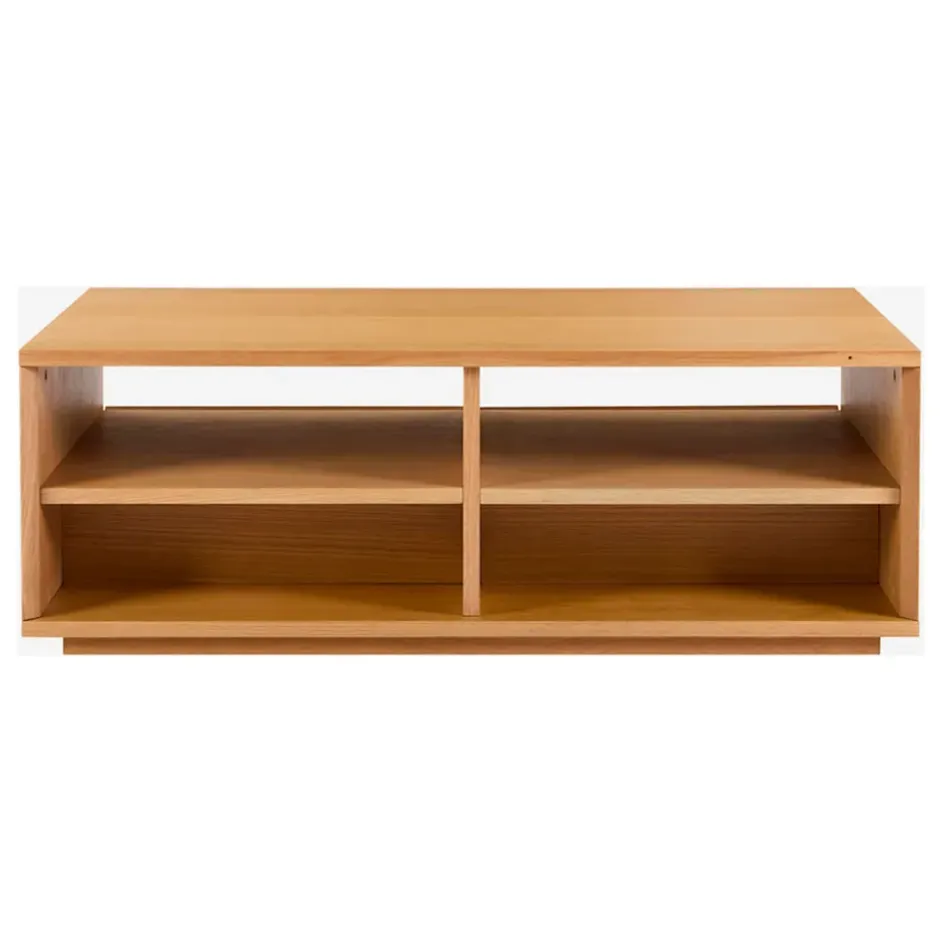 Déclinée en bibliothèque, buffets et table basse, la collection Hazo sublime la beauté naturelle du chêne au quotidien.La table basse avec rangements en chêne Hazo s’invite dans le salon, apportant une note authentique.