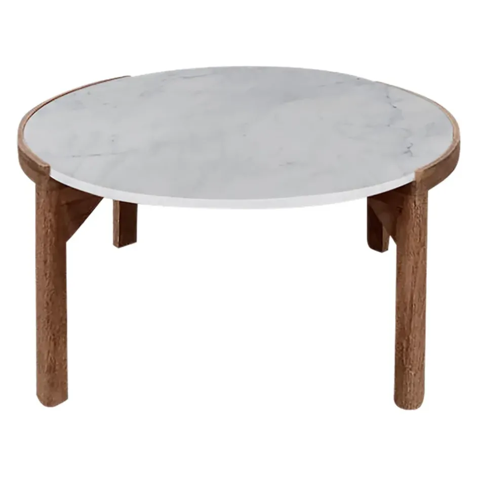 Découvrez la table basse ronde en manguier et marbre naturel et blanc d80cm – Agate.