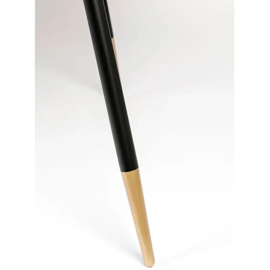 Que ce soit pour un repas de fête ou pour un usage quotidien, cette table s’avère être un choix judicieux pour ceux qui recherchent un mélange d’esthétique et de praticité.Plateau de table en MDF avec placage en bois de frêne finition couleur noyer (teinté et laqué) et bord en fer peint or. Pieds enduits de poudre noire avec pieds peints en or sur capuchons en plastique
