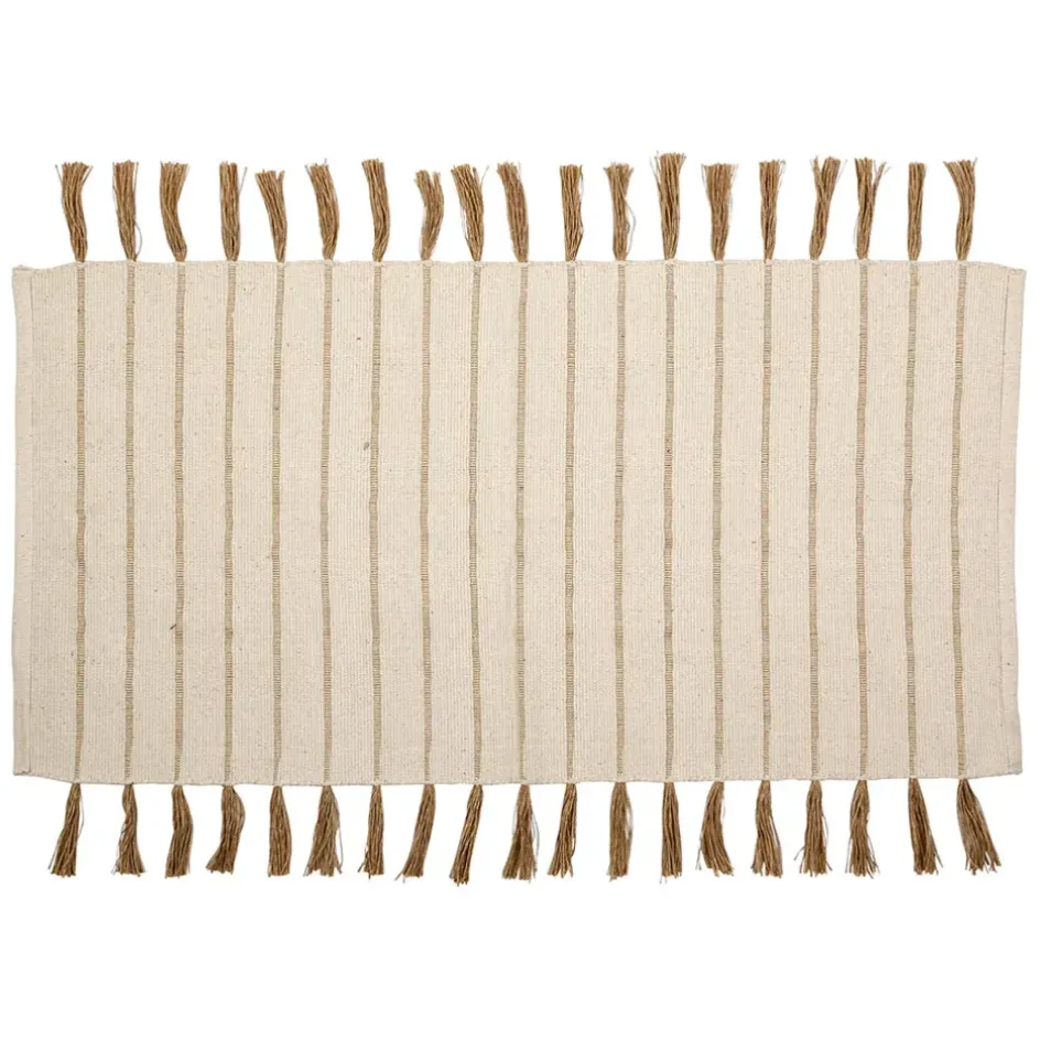 Découvrez le magnifique tapis en coton et jute écru Kolore de dimensions 140x70cm, parfait pour ajouter une touche de style à votre décoration intérieure.