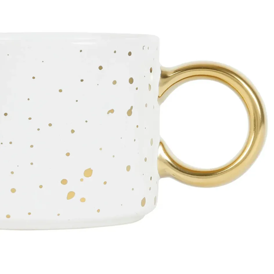 En grès blanc mat parsemé de touches dorées, cette tasse attire le regard et s’intègre harmonieusement dans tout type d’intérieur.