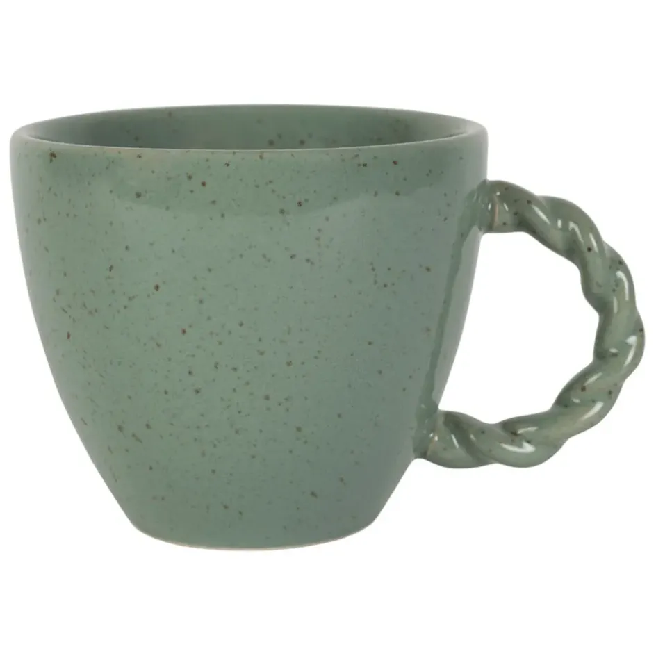 Découvrez cette tasse en grès dans un apaisant ton sauge moucheté, parfaite pour accompagner vos moments de détente.