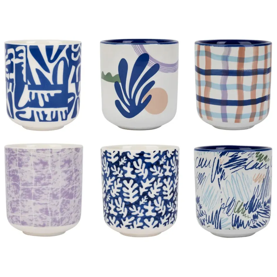 Venez découvrir notre Tasse x6 bte funny bleu+parme 10cl-d5.5xh6.5cm porcelaine de la marque SEMA Design à découvrir sur Fabrique de Styles.Porcelaine / Porcelain