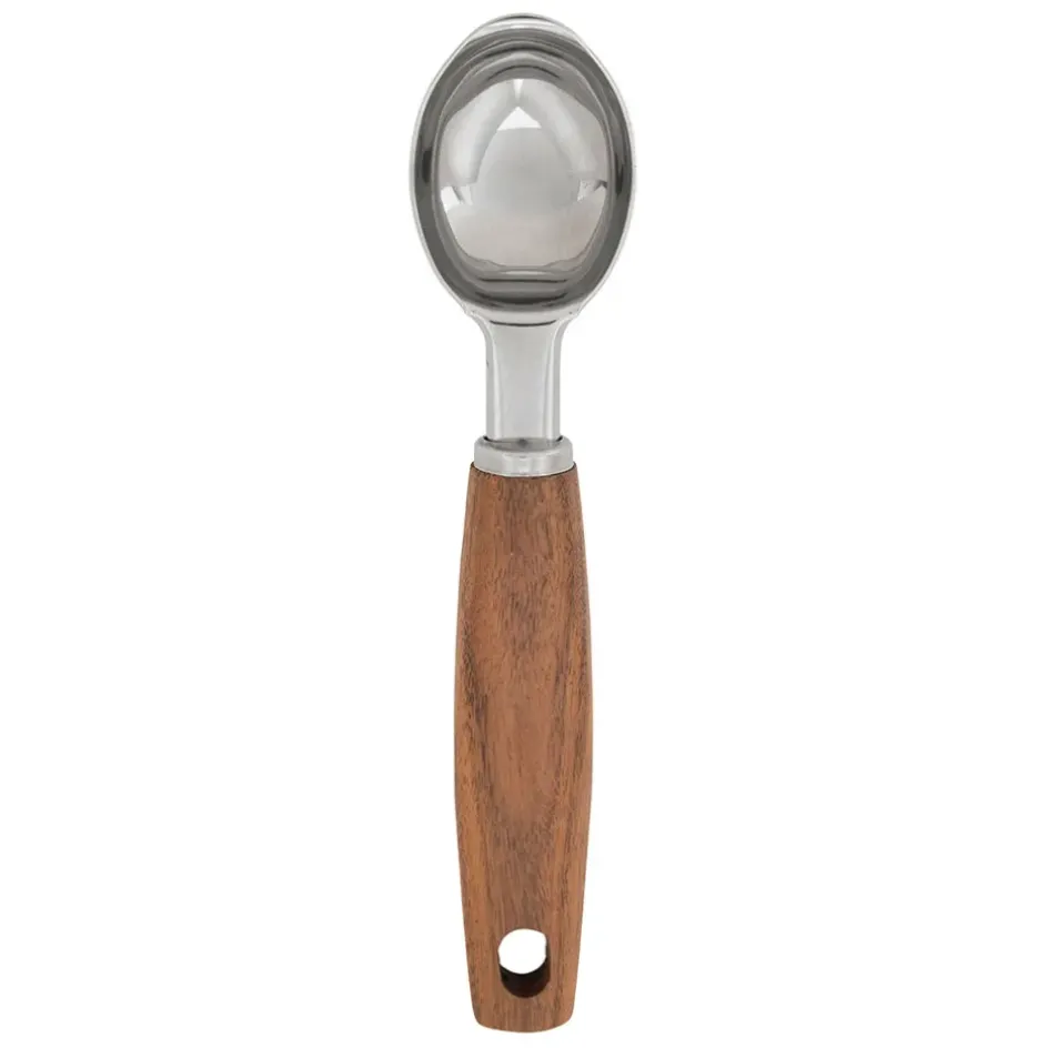 Son manche en bois offre une prise en main agréable, permettant de prélever avec précision la quantité parfaite de glace.