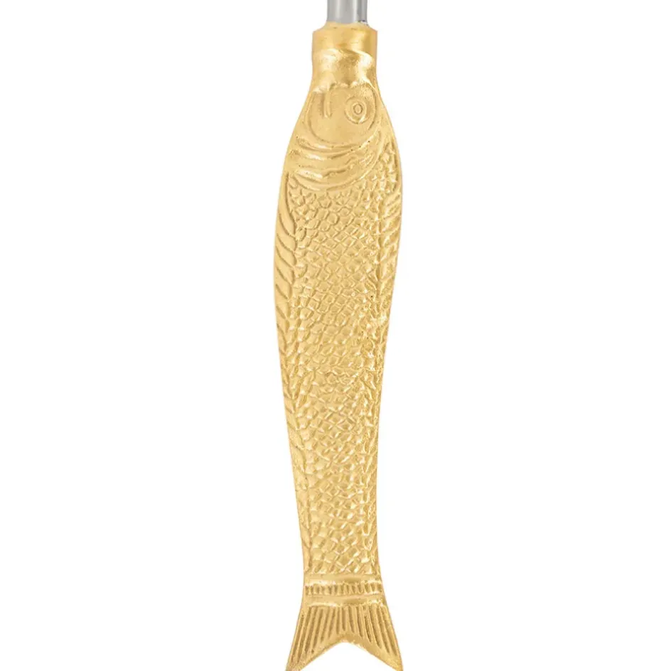Chaque manche, fabriqué en laiton doré, est finement sculpté en forme de poisson, ajoutant une note ludique et distinctive à vos repas.