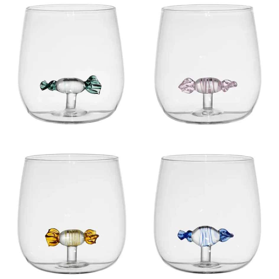 Découvrez notre séduisant coffret de quatre gobelets en verre multicolore de 40 cl, parfaits pour ajouter une touche de gaieté à vos moments de partage et de convivialité.