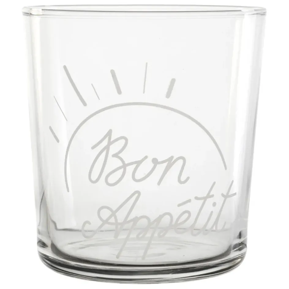 Découvrez notre gobelet Bon appétit en verre blanc de 36cl, parfait pour vos moments de convivialité à la Bodega.Verre. Création Unique.