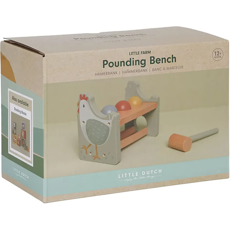Frappe les 3 boules dans le banc à marteler en bois avec le marteau.