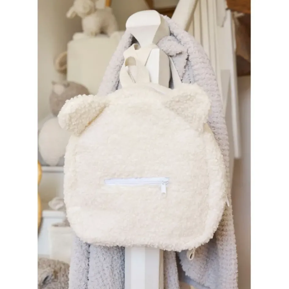 Découvrez le sac à dos en tissu bouclette écru de la collection Sweetdream, une perle rare qui allie confort et fonctionnalité pour le quotidien de vos tout-petits.