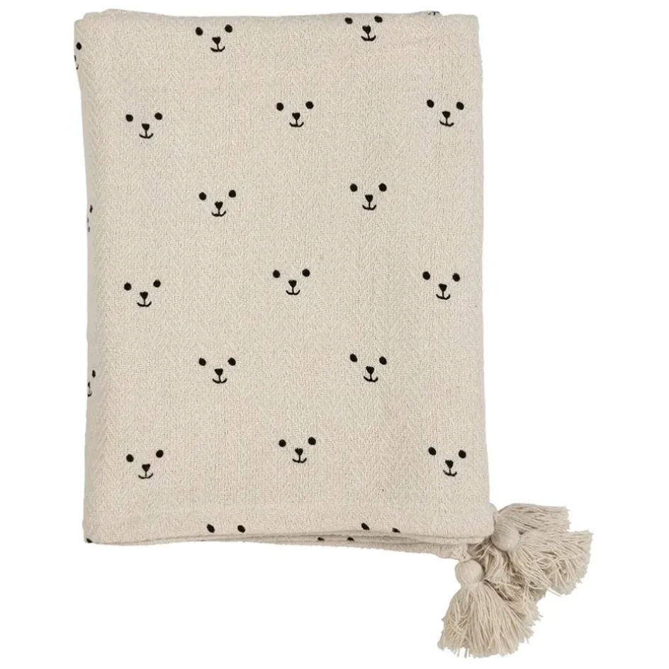 Ce plaid charmant arbore un motif d’ours subtil et raffiné, idéal pour apporter une touche douce et ludique à votre décoration.
