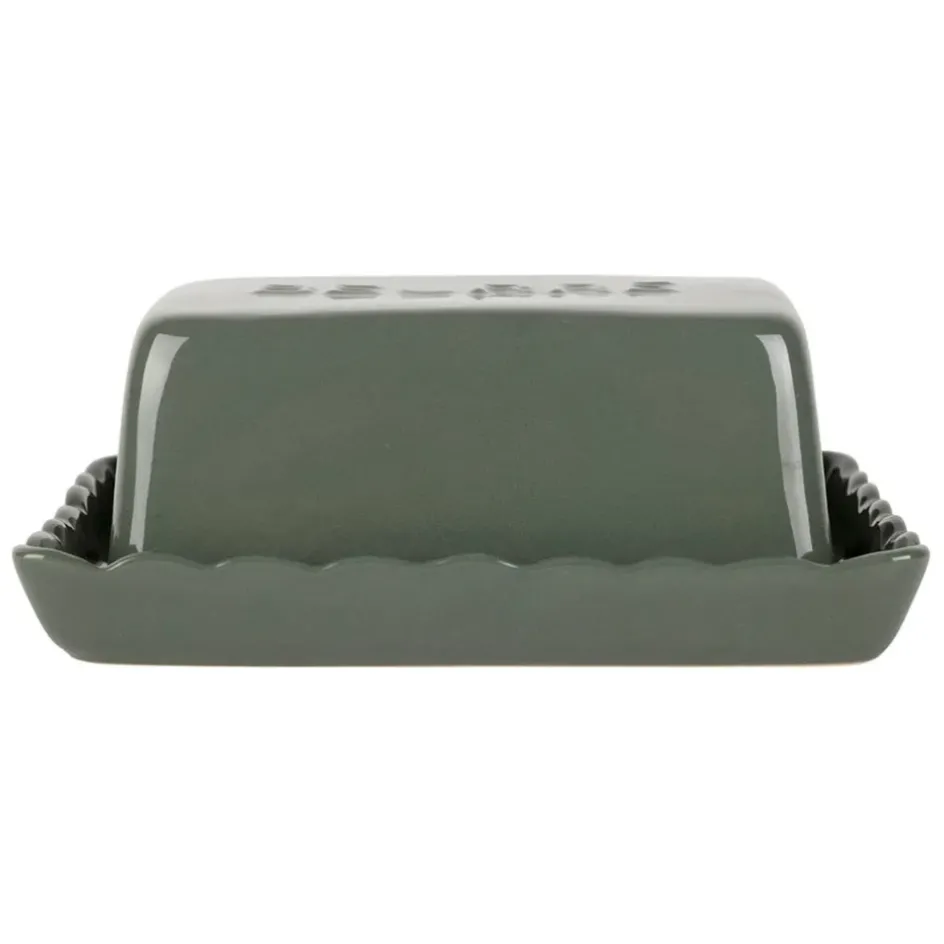 Ce beurrier en grès aux accents de romarin est conçu pour apporter une touche unique à votre table tout en préservant la fraîcheur et la consistance optimale de votre beurre.