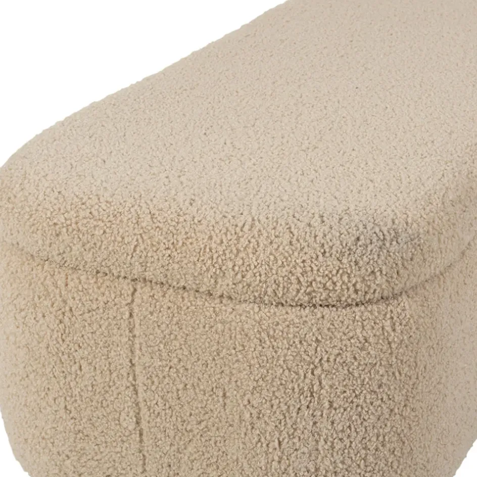 Découvrez le Banc coffre en bouclette sable – Claudine, le mariage parfait de l’élégance et de la praticité.