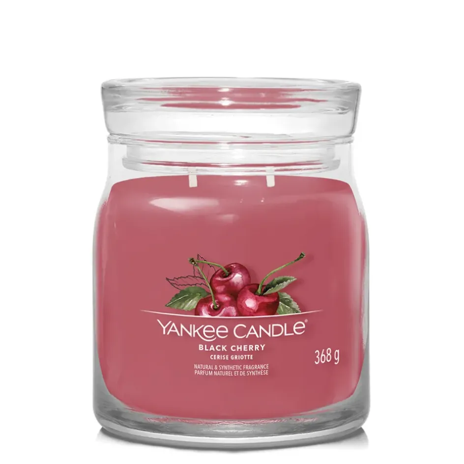 Découvrez notre magnifique Bougie signature cerise griotte en format jarre moyen de chez Yankee Candle.