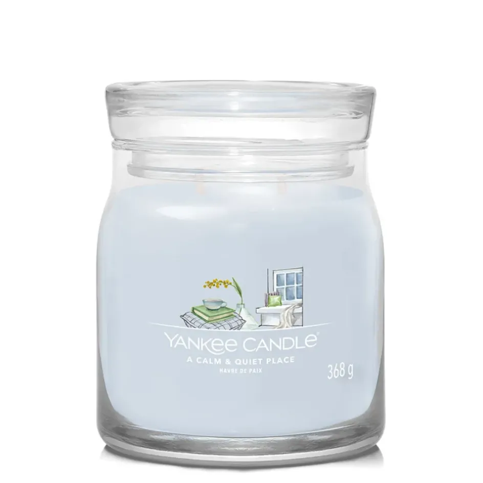 Découvrez la Bougie signature Havre de Paix de Yankee Candle, dans son format moyen en jarre, pour une expérience parfumée unique et apaisante.