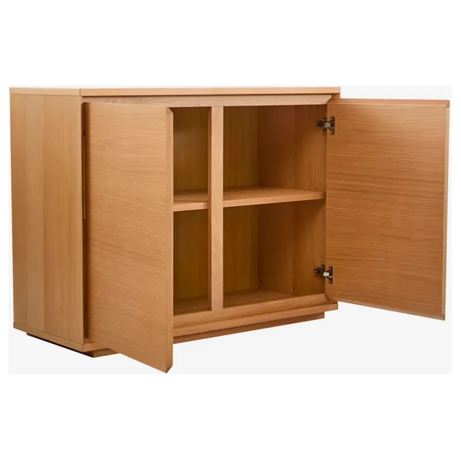 Déclinée en bibliothèque, buffets et table basse, la collection Hazo sublime la beauté naturelle du chêne au quotidien.Le buffet bas 2 portes en chêne Hazo s’invite dans le salon ou la salle à manger, apportant une note authentique.